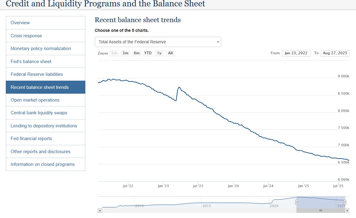 As of 10/6/2025, there's been no money printing or quantitative easing (QE) this cycle—quite the opposite, in fact. The Fed's still in quantitative tightening (QT) mode, offloading Treasuries from its balance sheet like a decluttering guru on a mission, shrinking liquidity rather than expanding it. That's the antithesis of a bull run spark—it's like trying to ignite a bonfire by dousing it with water. QE is the flood of cash that fuels speculation, turning dollars into rocket fuel for assets like Bitcoin. Without it, we're in a holding pattern, with crypto prices treading water like a swimmer in a pool of uncertainty. Projections suggest QT might end in early 2026, flipping to QE as debt pressures mount, but until then, the bull's still in the pen, snorting impatiently.